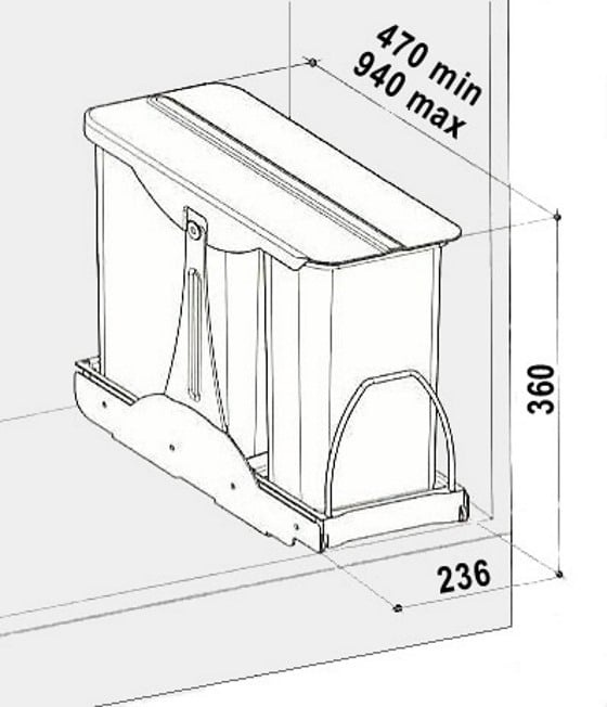 - Dimensiuni ansamblu: L 236 mm × H 360 mm × A 470 mm