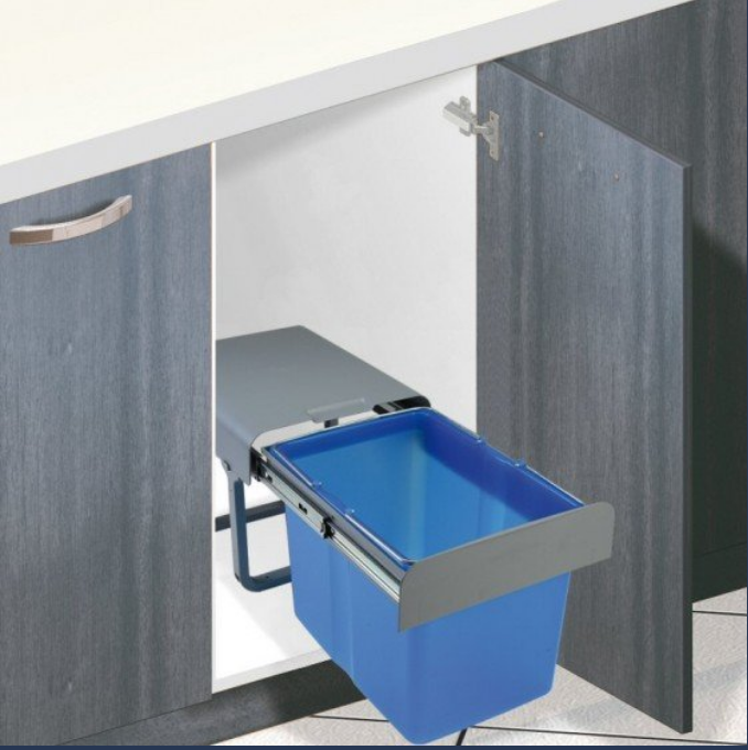 Cos gunoi incorporabil cu 1 compartiment mobil – ideal pentru bucatarie. Ghidaje din otel galvanizat (pana la 50 kg) si glisiere cu bile, extragere totala pentru acces complet. Recipientul si capacul sunt detasabile si lavabile in masina de vase.