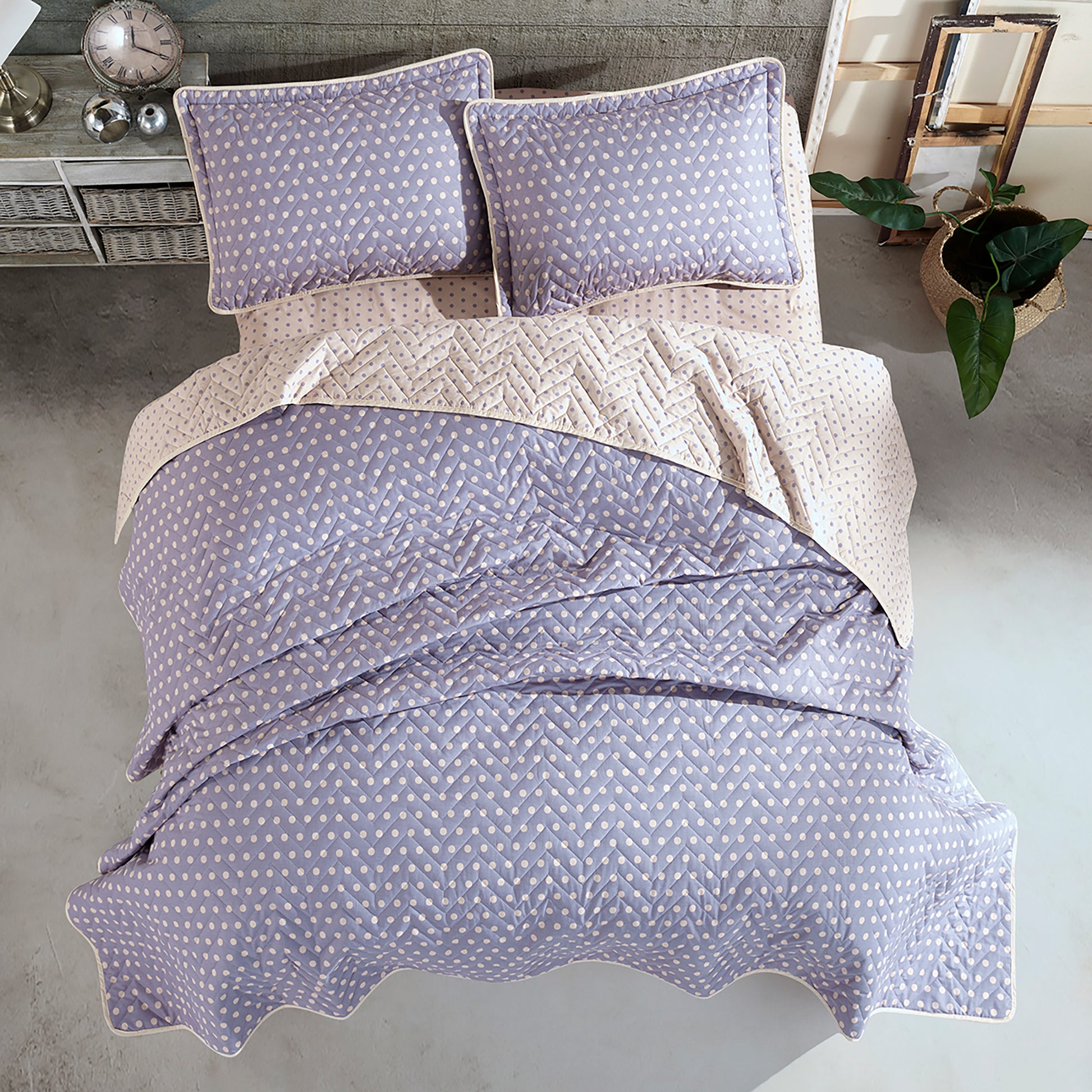 Cuvertura de pat matlasata, din bumbac, cu fete de perna, dimensiune 240x260 cm