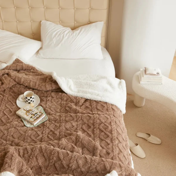 Patura Cocolino cu blanita 200x230 cm – Tricotaj JPCT — pufoasa, foarte calduroasa si placuta la atingere. Ideala pentru serile reci, somn confortabil sau relaxare pe canapea.